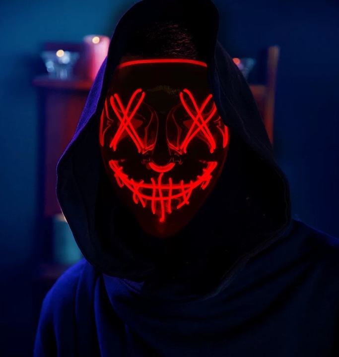 EL Cosplay搞笑聚氯乙烯乳胶材料发光万圣节嘉年华充电派对成人面具